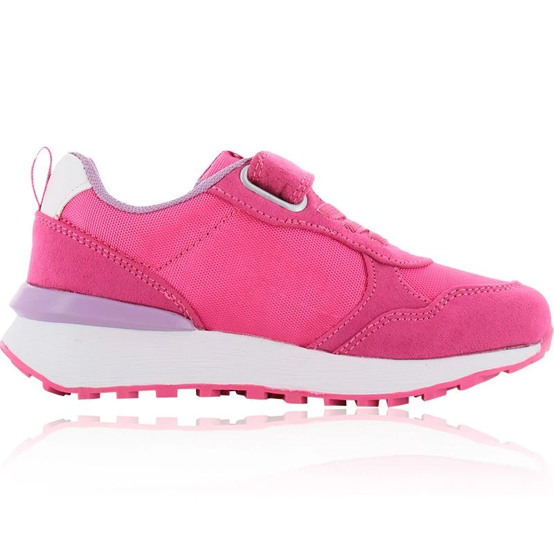 Step out in style with the Girls Anastasia Retro Velcro Trainers. The stretch elastic laces and pull tab at the heel allow easy on and off, complete with a Velcro hoop and loop strap for a secure fit. These lightweight kids’ Velcro trainers offer a comfortable fit for balance and stability with a retro look.