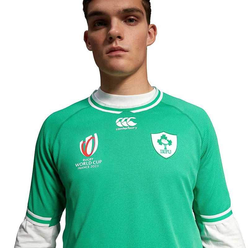 Show your support with the Ireland Rugby Home Pro Rugby World Cup 23 Jersey. Once every four years, the Rugby World Cup brings teams, nations and fans together. This jersey is designed to take your performance up a level, this jersey is super breathable and quick drying with VapoDri technology for lasting comfort. Complete with the Official IRFU crest and Rugby World Cup 23 logo.