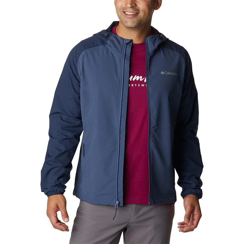 Hike happy in a drizzle in this water-resistant jacket with an adjustable hood, hem, and binding at the cuffs for extra coverage.